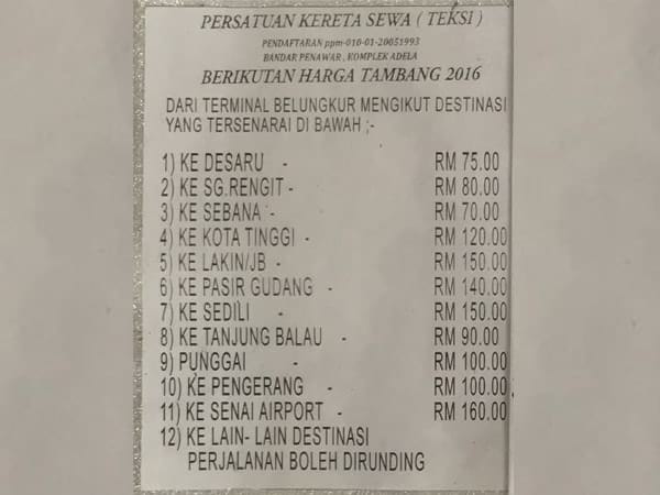 | 3. | Ferry from Changi Ferry Terminal to Tanjung Belungkor Ferry Terminal |