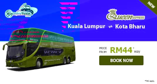 With the rising number of local residents in Kota Bharu working and studying in Kuala Lumpur, there is an increased in demand for the bus services between Kuala Lumpur and Kota Bharu. To avoid disappointment in not getting a bus ticket, you are advised to book your bus ticket between Kuala Lumpur and Kota Bharu in advance online via BusOnlineTicket.com and travel with Queen Express. Instant booking confirmation email will be sent to you once the booking is confirmed.