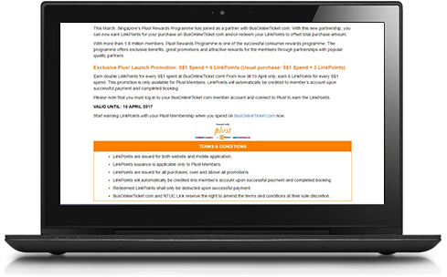 Once you successfully connected your Link membership, you will see “Connected to Link” in your BusOnlineTicket account. You can now earn and redeem Linkpoints on your bookings with BusOnlineTicket.com.