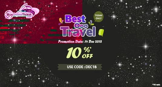 Please note that this exclusive discount is valid for only one day on 14 December 2018, Friday. You can use the promo code DEC18 when you make any bus ticket booking via BusOnlineTicket.com to enjoy this special 10% OFF discount on 14 December 2018. The discount will be applied automatically once you key-in and submit the promo code on BusOnlineTicket.com payment page.