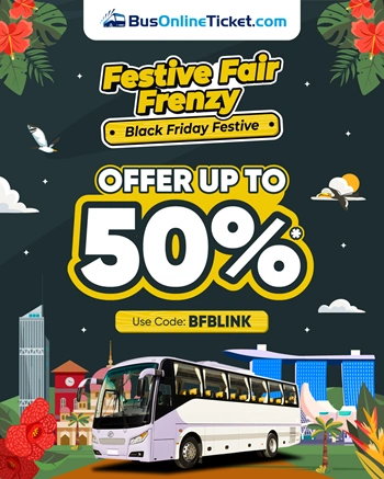 Terms & Conditions (BFBLINK) • Valid for booking from 27 Nov – 2 Dec 2025 only • Valid for travelling between 27 Nov – 2 Dec 2025 only • Valid for BusOnlineTicket.com members with verified phone number only • Instant discount offer for new members is limited up to RM/S$5 only • The discount code can only be redeemed up to one (1) times per member • Valid for first 300 redemptions only • The cashback earned will be credited to the member’s BOT Wallet within 24 hours after the booked departure date • Cashback earned is subject to BOT Wallet and Cashback Terms & Conditions • Valid for bus & ferry ticket booking on BusOnlineTicket.com website & apps only • The offer cannot be used in conjunction with any other reward, discount, e-voucher or cashback from other party • Any other charges, including (but not limited to) processing fee, travel insurance, personal expenses or accommodation request, shall be borne entirely by the customer