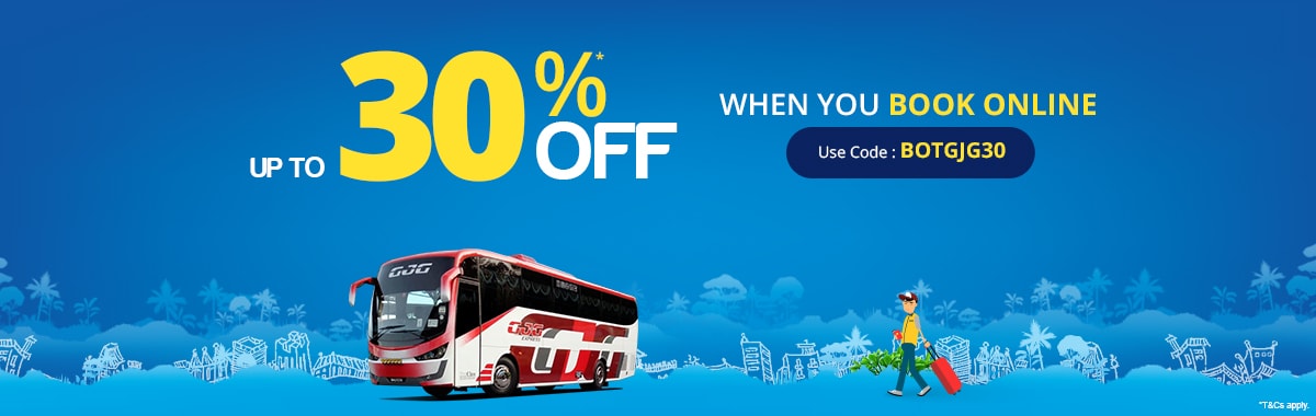 Just key-in the discount code BOTGJG30 in the payment page and you will receive a request to send an OTP to your mobile number. Once you have inserted the OTP, you can enjoy up to 30% OFF on your total amount of bus ticket price on BusOnlineTicket.com.