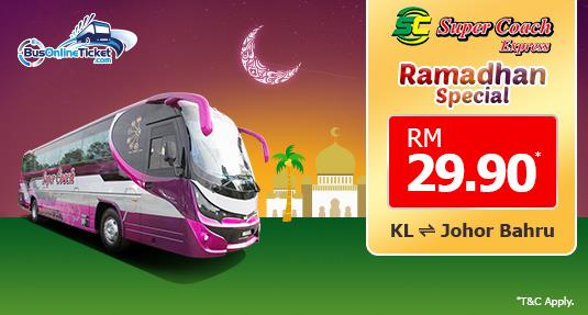 The holy month of Ramadhan is all about giving and sharing. During this blessed month, Super Coach Express is excited to reward their customers a cheaper bus ticket to go back to hometown for Ramadhan celebration with their family and friends. Super Coach Express is offering bus from Kuala Lumpur to Johor Bahru and from Johor Bahru to Kuala Lumpur at RM29.90 only during its Ramadhan Promotion.